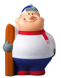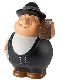 - Antistressbal in de vorm van een figuur, met een ronde buik en een glimlachgarantie.
