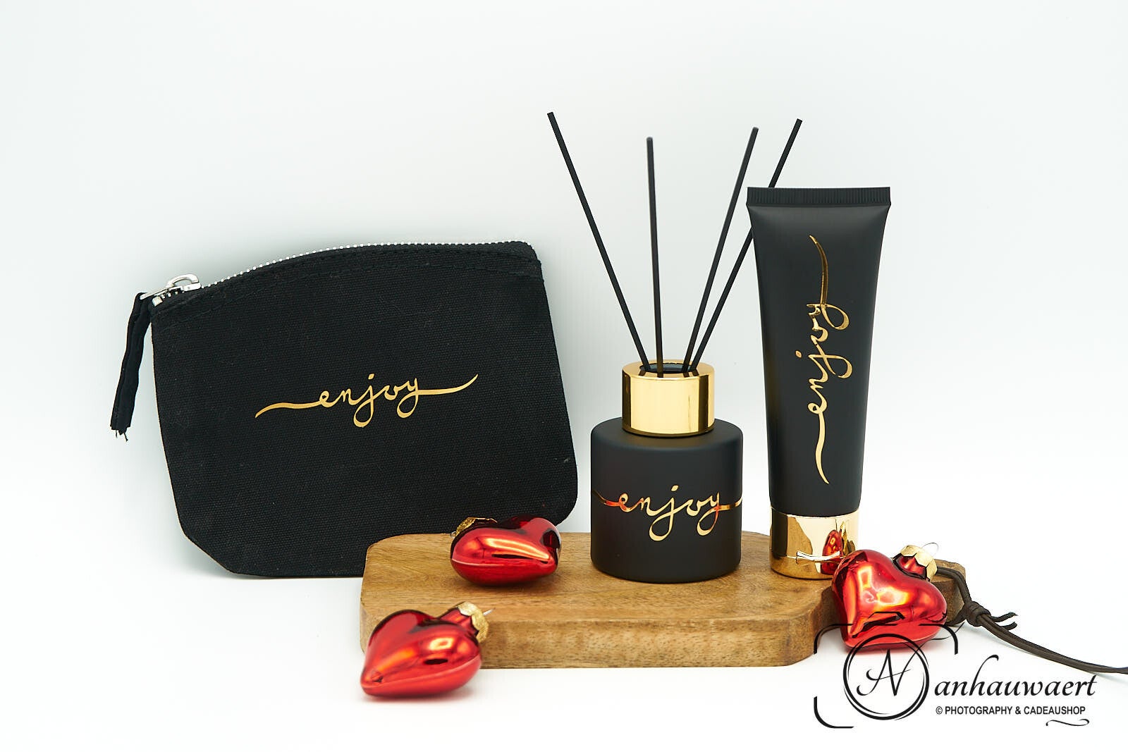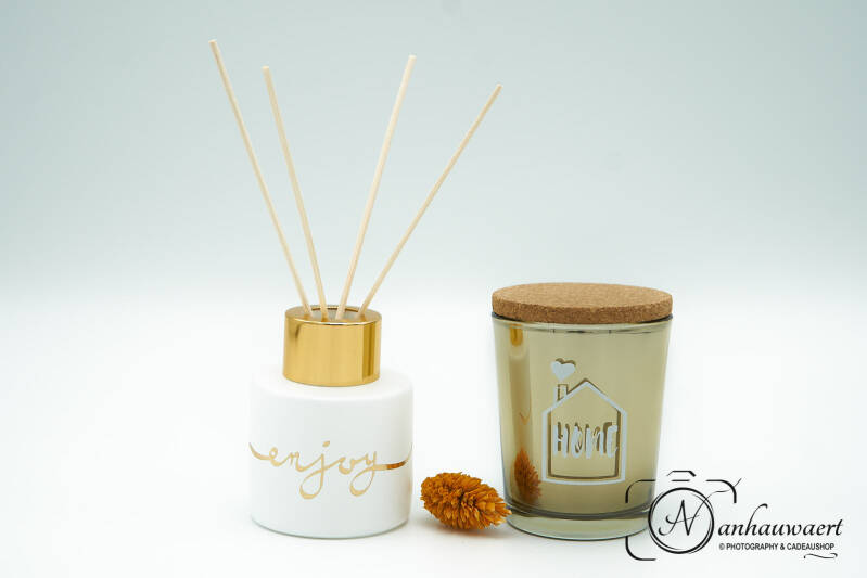 Diverse geurflesjes / diffusers, kaarsjes en handlotion te verkrijgen al dan niet met een gepersonaliseerde tekst.