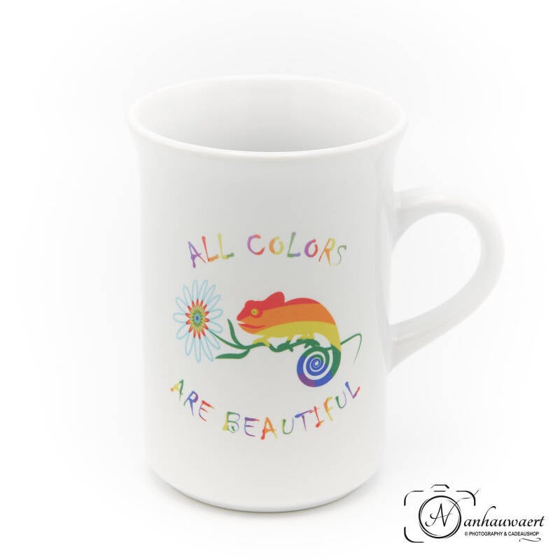 Gepersonaliseerde LGBT koffie mok " All colors are beautiful ! " Uniek design voor een uniek iemand.
